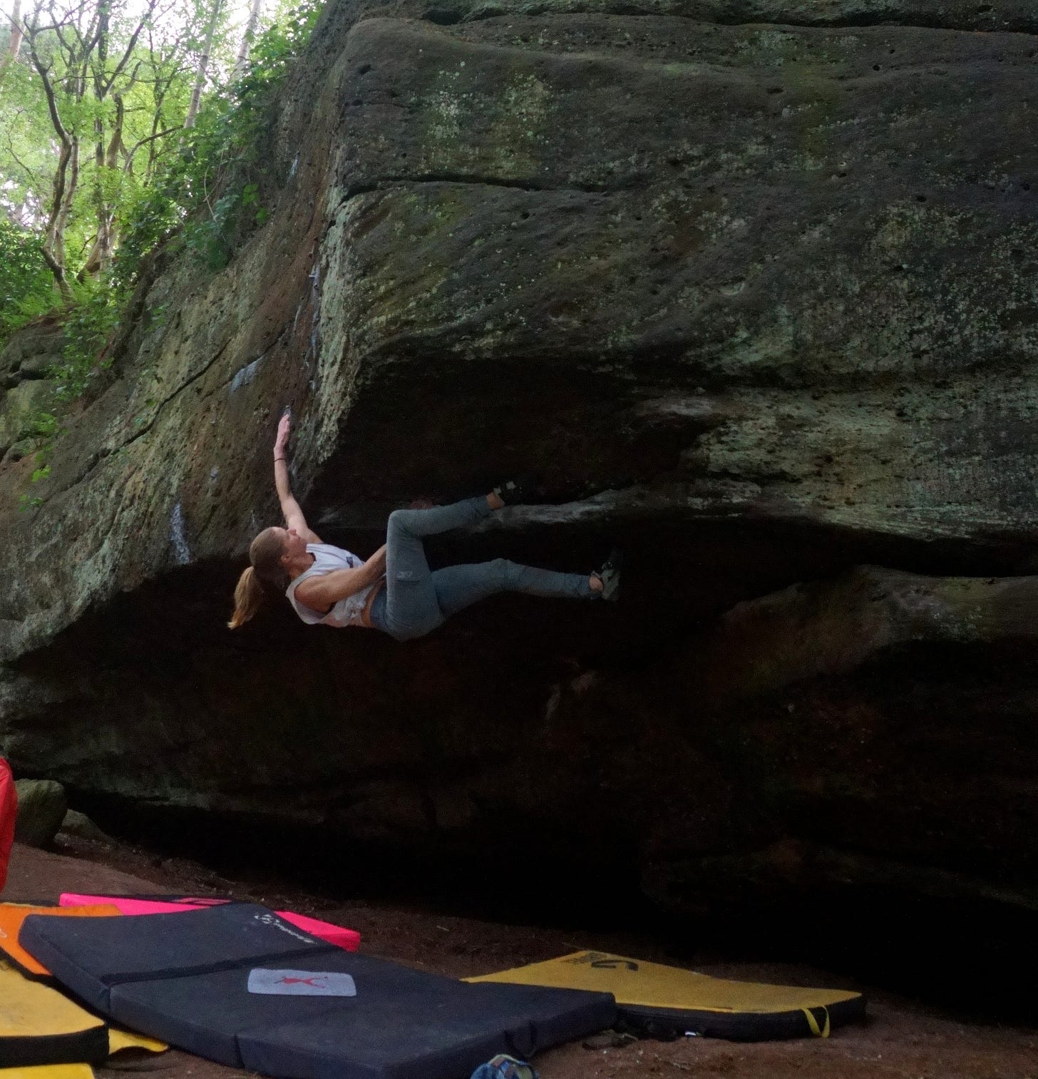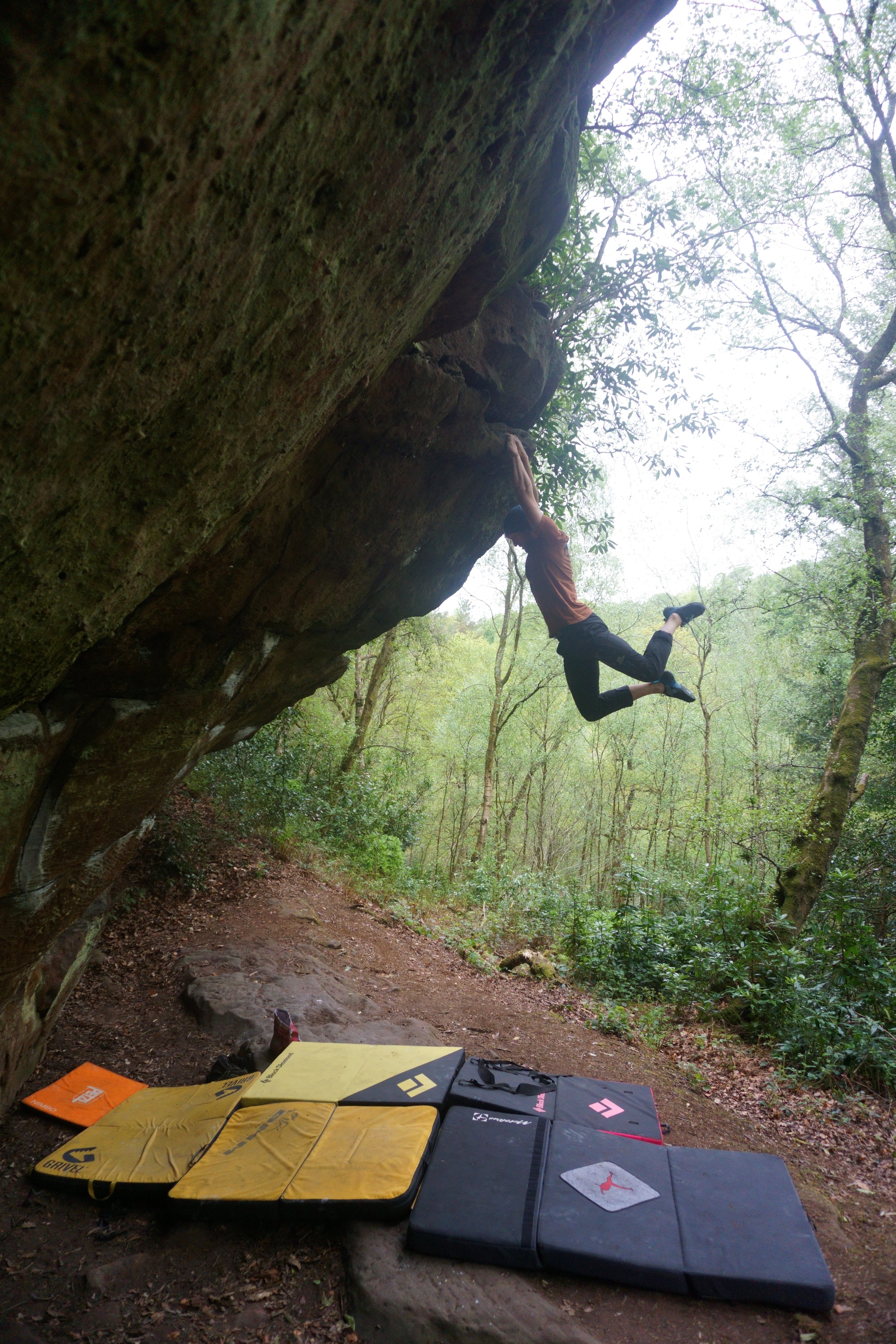 In mid May, the trees are a riot of leaves, the vivid green canopies so dense above that it gives the wide paths wending through the trunks an almost other-worldly quality. When I found myself there with a group of friends a few weeks ago, it certainly felt as though I was entering another realm, one of wild nature, mythic creatures lurking in the shadows… and slopey boulders. The boulders are dotted around the woods, some clearly visible from the path, some tucked away in their own little worlds, so hidden that pulling onto them almost feels like falling through the veil into an alternate realm where everyone else has disappeared. We were lucky enough to be there as guests, getting the grand tour from friends who call Churnet their local, eager to show off all their favourite rocks.