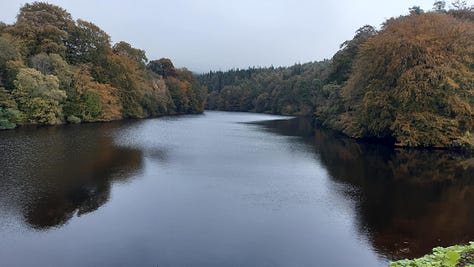 My next evening jaunt was to Clapham - not the district in London, the village in Yorkshire. A picturesque, shallow stream hustled between tree-lined banks and under an arched stone bridge. Following the water upstream I found a waterfall - lovely, if manmade, as part of the Ingleborough Estate. The Ingleborough nature trail wound further upstream from the falls and along the edge of a lake. At the tipping point of autumn, the woods hemming the lake were splotched with orange and yellow and an unreachable limestone crag peeked enticingly out between the leaves on the far side of the water. I wandered up through the the grounds of Ingleborough Hall were sculpted to the vision of Reginald Farrer, who, thanks to his botany fuelled travels was known, apparently, as the “Patron Saint of Alpine Gardening”. Given the havoc that rhododendron - one of his introductions to the estate - is wreaking on native plant life , I’m not sure I’d shout about that one, but sure.